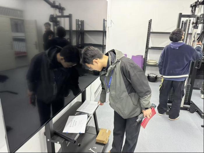 本次检查坚持“全覆盖、零死角、重实效”原则,聚焦实训室设备设施运行、安全制度落实、环境管理规范等核心环节,通过现场核查、实地走访、细节问询等方式开展深入排查。在艺术体育学院检查过程中,检查组重点查看了舞蹈实训室、健身房、游泳池等重点实训场所,发现存在四项需整改问题:舞蹈实训室地板隔条出现脱落、突起现象,存在绊倒安全隐患;部分实训室未建立使用情况登记表,日常管理痕迹缺失;新修健身房通风设施配置不足,空气流通不畅;游泳池相关器材堆放杂乱,未按规范分类存放。
