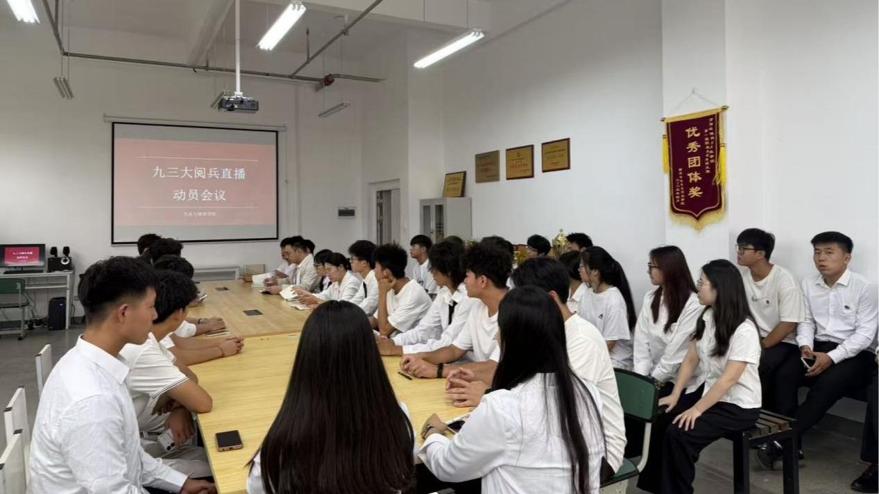 为纪念中国人民抗日战争暨世界反法西斯战争胜利80周年,增强大学生的爱国情怀与民族自豪感,艺术与体育学院学生党支部于9月2日在体育馆212会议室组织召开了九三大阅兵直播动员会议。学生党支部书记王杉,组织纪检青年委员童奕涵,宣传保卫统战委员王巧出席此次会议,学生党支部全体正式党员、预备党员以及在校...