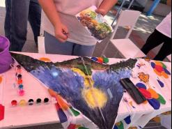 与之呼应的手绘风筝展区则洋溢着青春的蓝天梦想。学生们在继承传统风筝扎制技艺的基础上,于风筝面上大胆创新,手绘出融汇国潮元素、环保理念的缤纷图案,让传统技艺承载着新时代的愿景翱翔天际。
