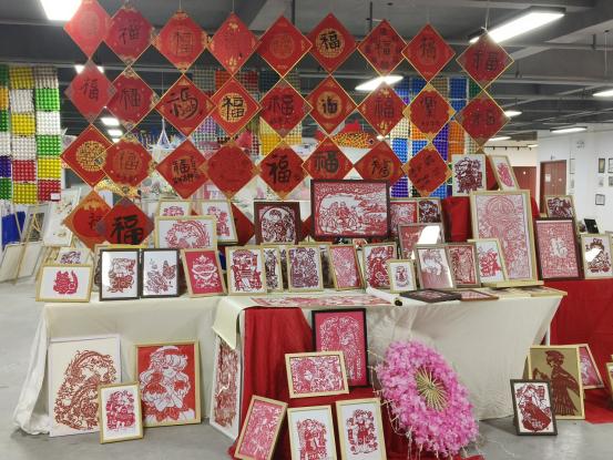 剪纸展区延续了深厚的文化叙事。学生们以十二生肖为经,以五十六个民族的文化符号为纬,创作出一系列主题作品。卯兔身着苗族盛装,午马佩挂蒙古族鞍饰,古老生肖与多彩民族元素的创意融合,生动诠释了中华民族多元一体的文化格局。