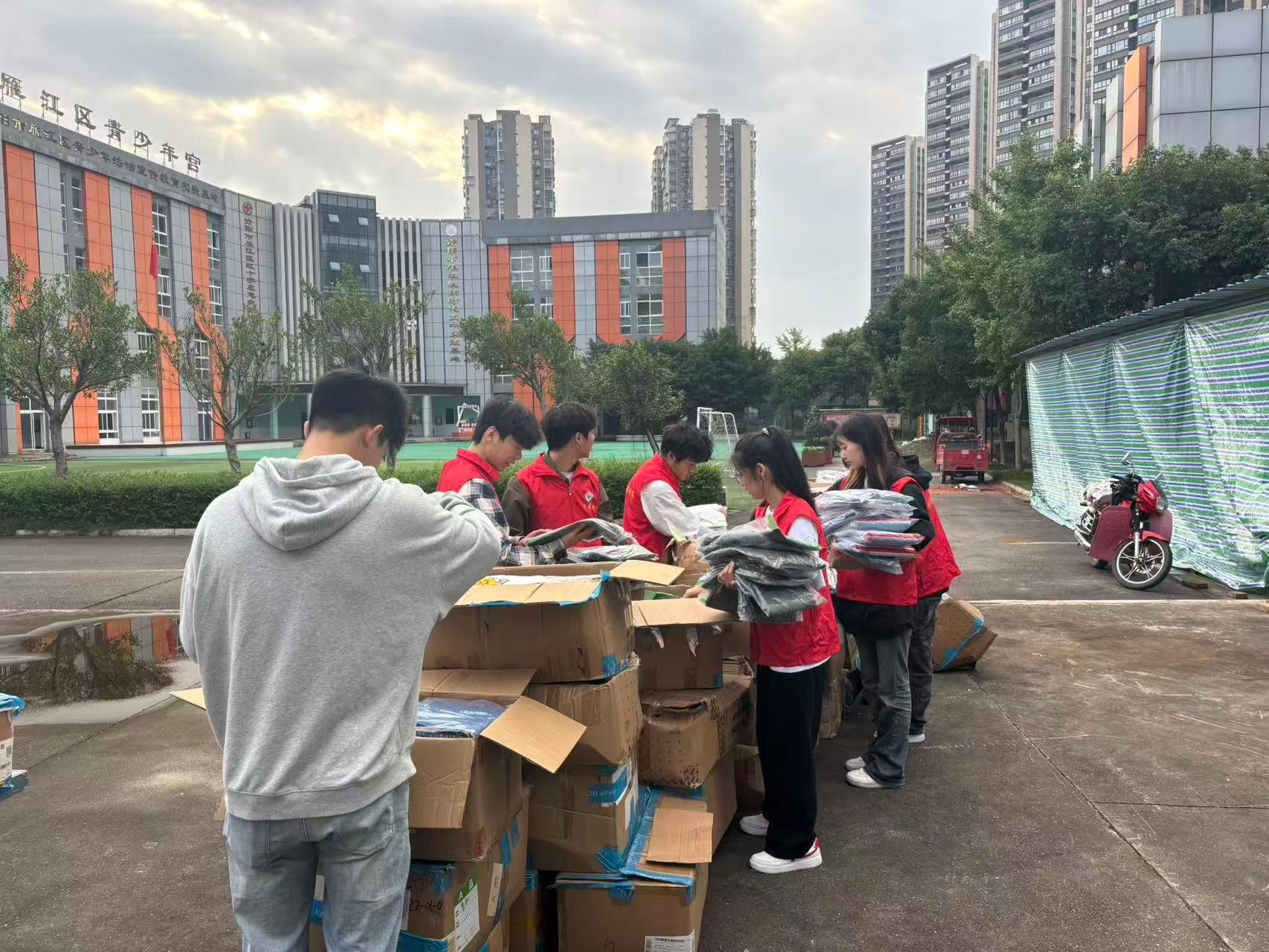活动当天,青年志愿者们早早来到少年宫,志愿者们提前对捐赠衣物进行细致整理,按照衣物类型、尺码分类打包,并妥善装车运送至少年宫。活动当天,志愿者们有序搬运物资,将分类好的衣物快速整理。