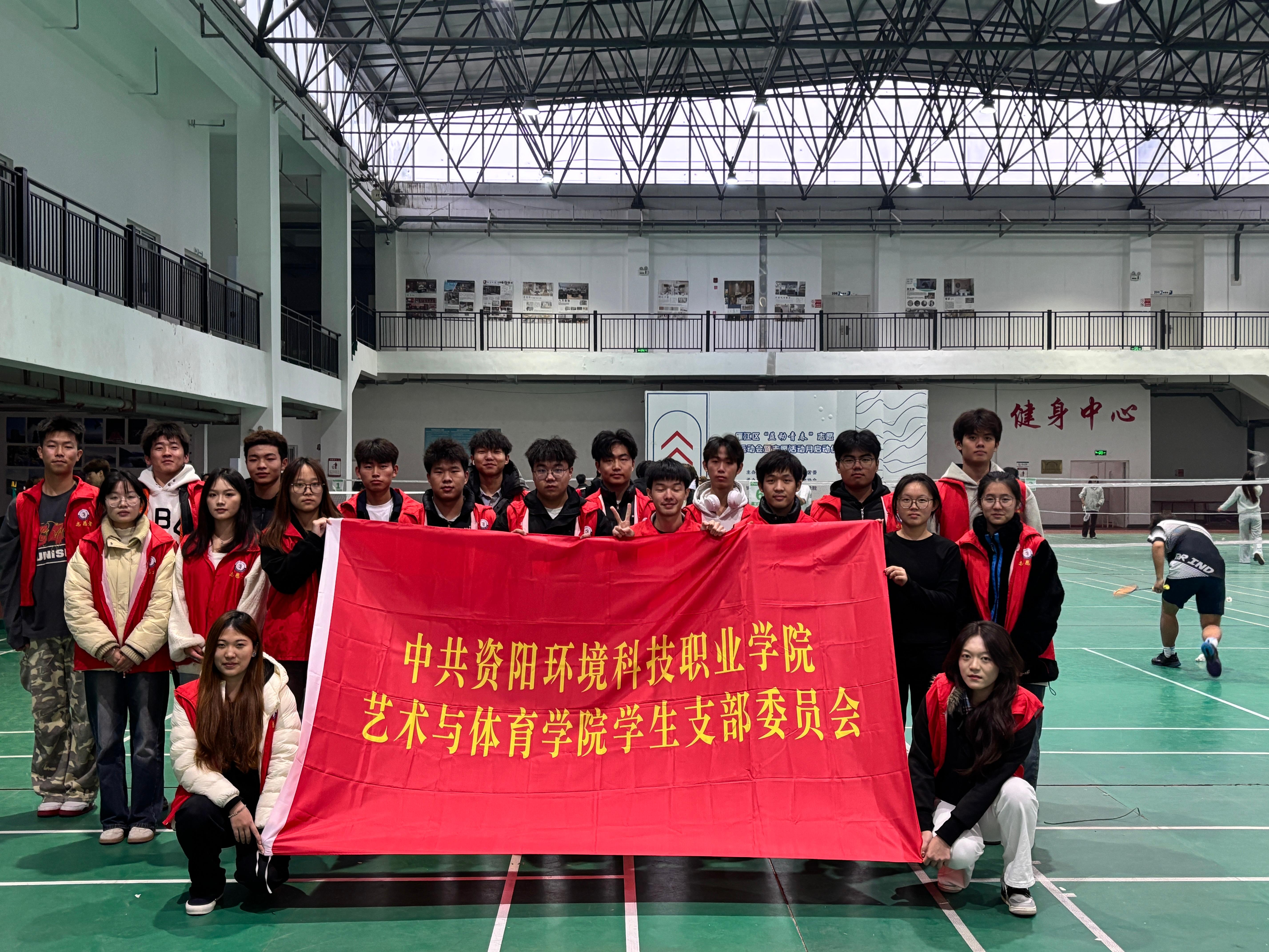 青春展活力, 以赛宣禁毒 。 2025 年 11 月 23 日,资阳市禁毒主题羽毛球赛在资阳环境科技职业学院体育馆拉开帷幕,经过一天的激烈角逐后圆满落幕。本次赛事志愿者队伍由艺术与体育学院学生支部委员会、艺术与体育学院学生会志愿者服务队全程提供保障服务,将体育竞技的活力与禁毒宣传的意义深度融合。