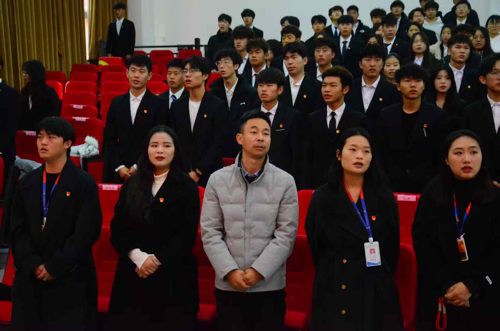 最后,学院党总支书记金书记也现场寄语,话语里带着对艺体学子的专属期待:“共青团是中国共产党领导的先进青年的群众组织,核心定位是党的助手和后备军,希望你们不负众望,严格要求自己,你们是光荣的共青团员,加油同学们!”话音落下,教室里又响起一阵更热烈的掌声,不少同学用力点头,把这话记在了心里。