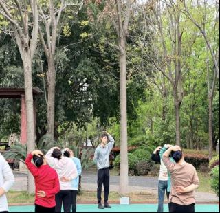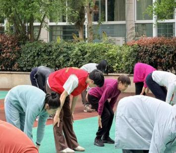 活动现场,春日的福利院内绿意盎然、暖意融融。学院体育保健与康复专业的师生们分组开展服务,充分发挥专业所长,为职工们提供全方位的健身指导与健康服务。针对职工普遍存在的肩颈、腰背不适等问题,师生们耐心讲解科学健身知识、日常保健技巧及慢性劳损防护方法,手把手示范精准的肌肉拉伸、关节放松动作,细致纠正职工们的不良体态和锻炼姿势,同时专门开展八段锦教学,从动作要领、呼吸配合等方面逐一指导,带领职工们完整练习,帮助大家快速掌握这套温和易操作、适配日常养生的健身功法,有效缓解工作疲劳、改善身体状态。