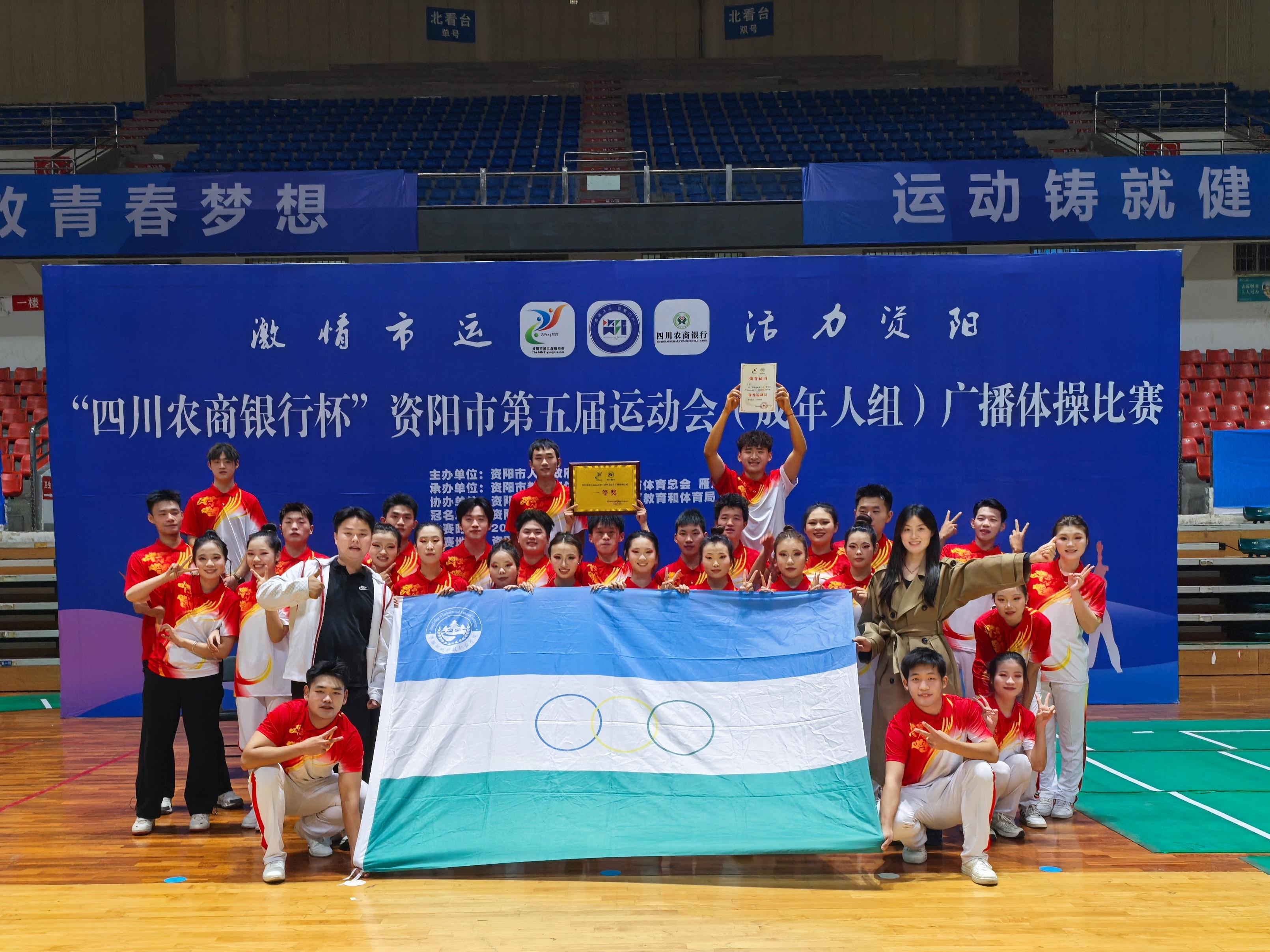 近日,资阳市第五届运动会广播体操比赛成绩揭晓,我校由健身指导与管理专业廖文泽老师、鲜雨杰老师率领的29名学生代表队,凭借磅礴昂扬的精神风貌和高度协同的团队表现,从众多强劲对手中脱颖而出,以优异成绩勇夺一等奖,为学校赢得了崇高荣誉。