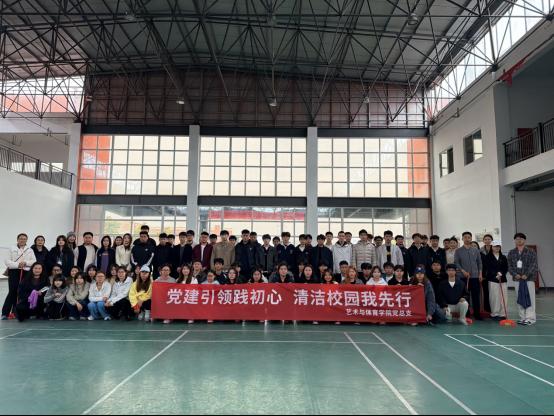 为深入强化党建引领的榜样和标杆作用,充分发挥基层党组织的战斗堡垒作用和党员的先锋模范作用,引导入党积极分子锤炼初心、勇担使命,2026年3月13日下午14:00,艺术与体育学院党总支联合学院实训室、学院团总支,组织全体党员、在校生入党积极分子,共同开展“党建引领践初心清洁校园我先行”主题实践活动,以实际行动扮靓校园环境,传递文明力量,彰显党建引领下的责任与担当。