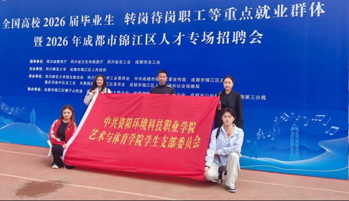 为深入贯彻落实党中央、国务院关于“稳就业”“保就业”的决策部署,充分发挥党建引领作用,切实将党员关怀转化为服务学生成长成才的实际行动,2026年3月28日,艺术与体育学院党总支书记金旭强带领学生党支部书记王杉、支部支委成员童奕涵、王巧及学院团总支书记赵润一行,前往四川师范大学狮子山校区,参加由省教育厅、省人社厅联合组织的大型双选会,为学院毕业生拓宽就业渠道、搭建优质平台。