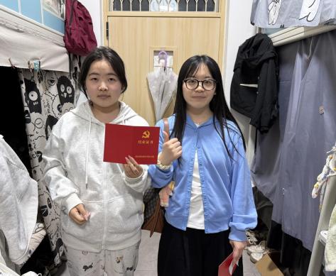 夜幕下,支部党员一行走进学生宿舍区,逐一走访相关寝室。在庄重而简短的仪式上,支部委员首先向每一位通过考核的积极分子颁发结业证书,对他们顺利完成阶段性培养考察表示祝贺,并勉励大家以此为新的起点,持续加强理论武装,坚定理想信念,自觉用党员标准要求自己。随后,党员同志与积极分子共同将印有“入党积极分子示范床”的标识牌张贴于床铺指定位置。一方小小的标识牌,不仅是一份荣誉,更是一面镜子、一份责任,意味着从这一刻起,寝室就是课堂,床铺就是阵地,言行就是形象。